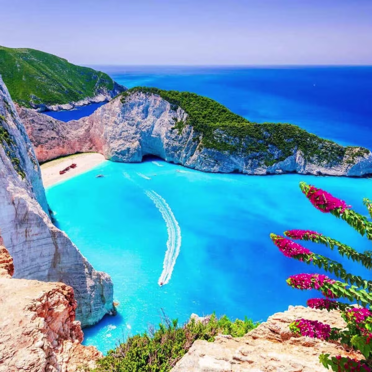زاکینتوس (3 شب): جزیرهای رؤیایی با ساحل معروف ناواجیو (کشتی شکسته)، غارهای آبی، آبهای شفاف فیروزهای، تفریحات آبی و چشماندازهای نفسگیر.
